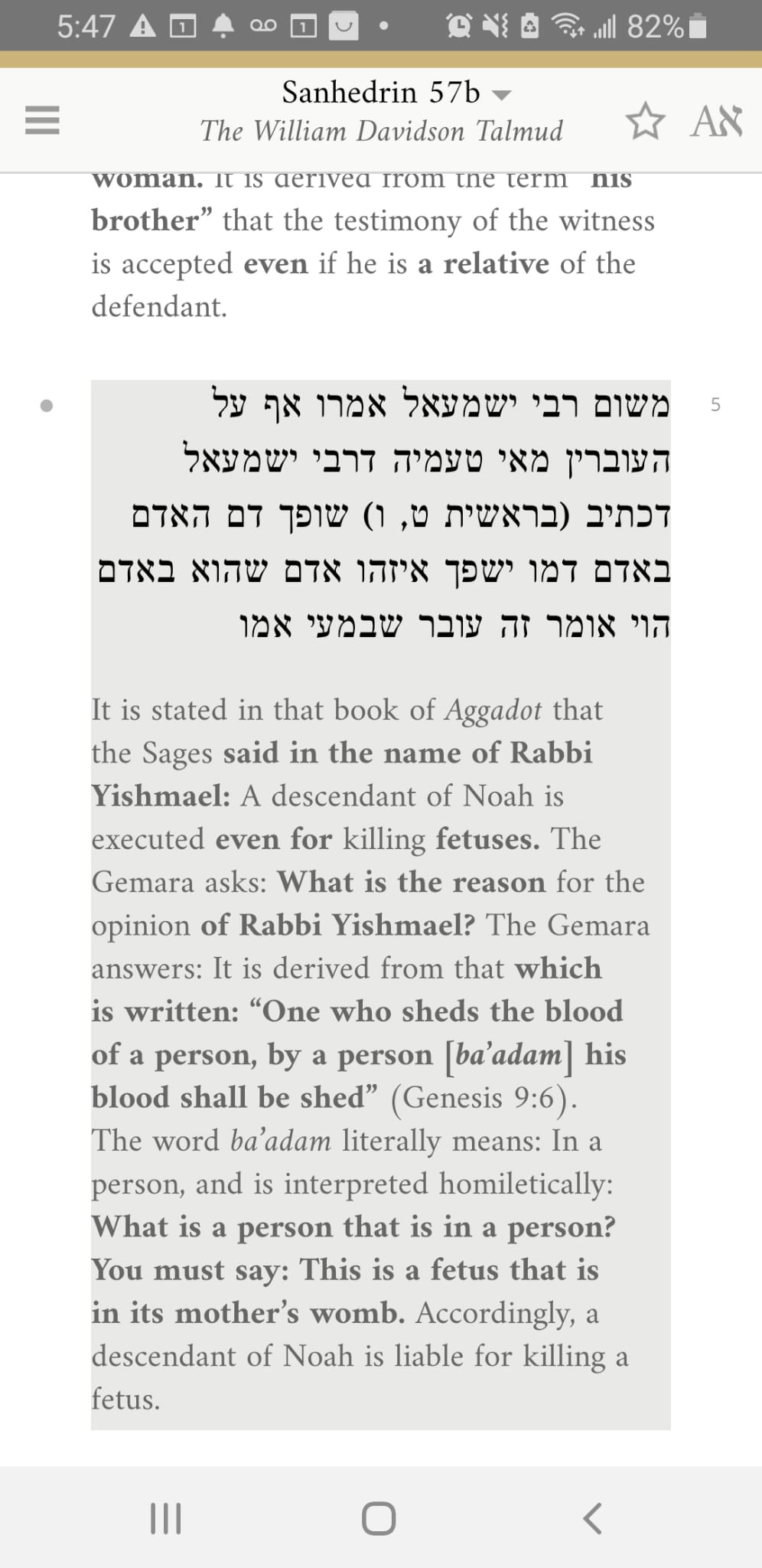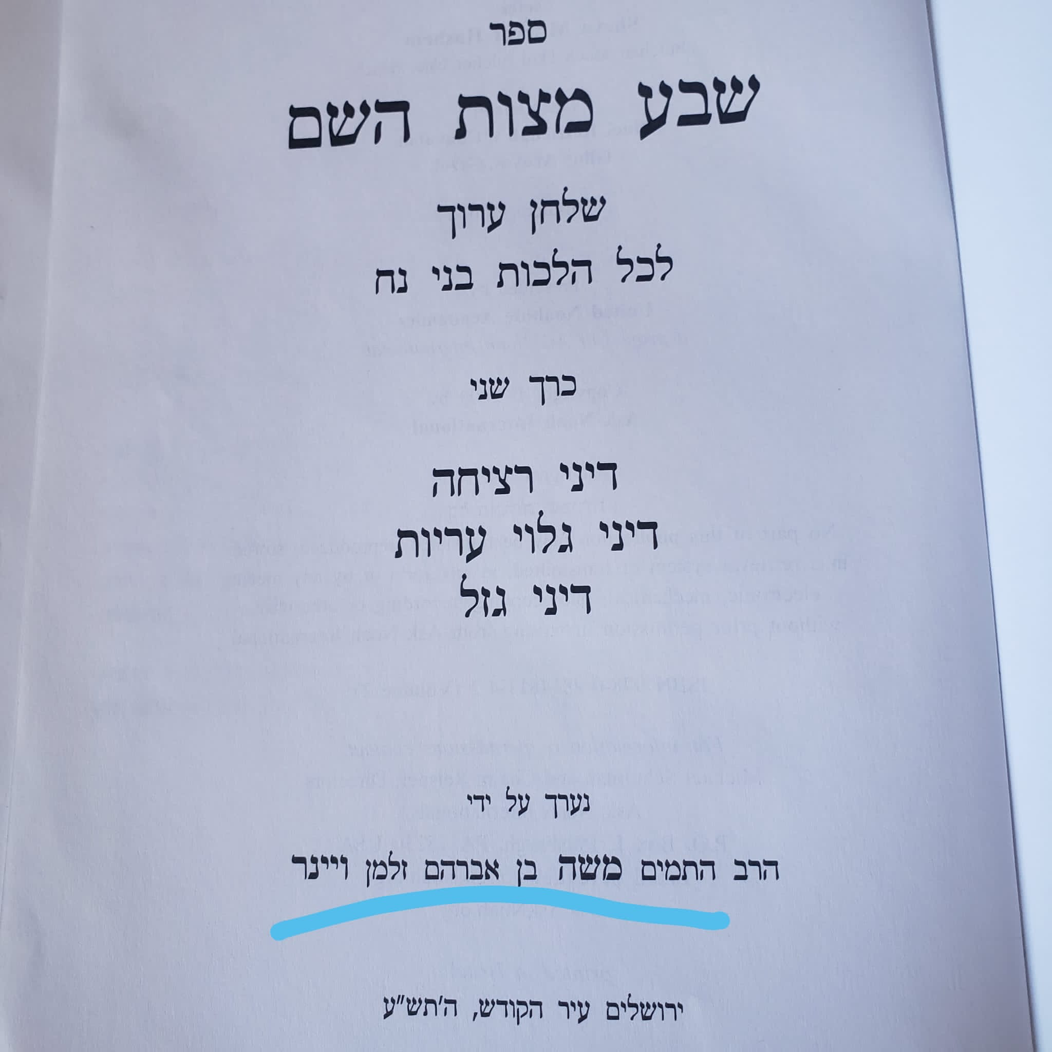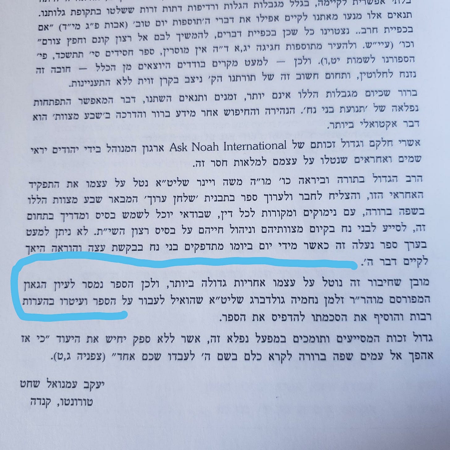 “On Shabbos I looked up abortion in שבע מצות ה (the holy book “Sheva Mitzvos Hashem”, “The Seven Laws of G-d” by Rabbi Moshe Weiner, and I noticed Reb Zalman Nechemya Goldberg A”H has a lot of comments on the pages of the Sefer.