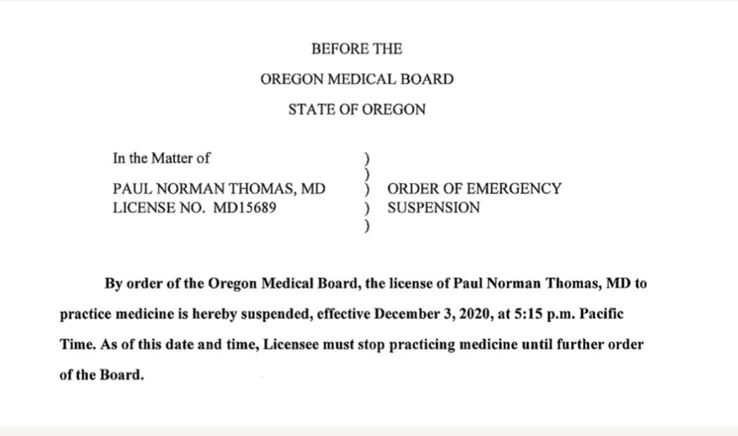 The response to the critical information revealed by Dr. Thomas’s study, from the government body entrusted with protecting the people’s health in his state? They pulled his license.