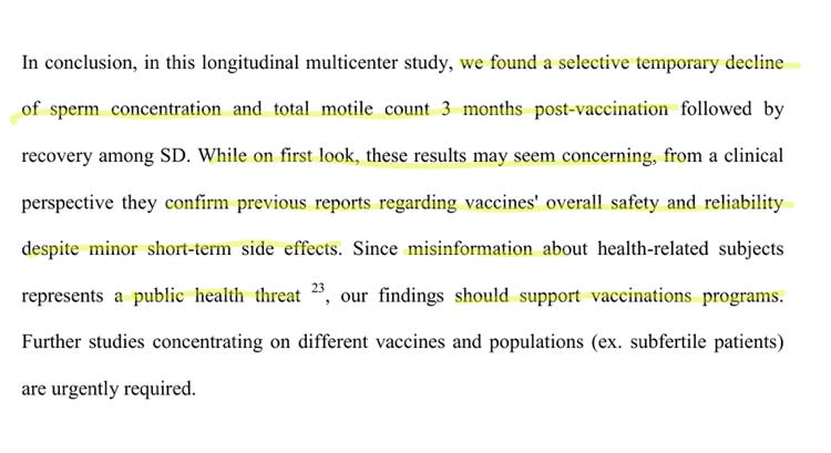 An Israeli study was published over the weekend with data about sperm counts in vaccinated men. The study included 37 sperm donors from 3 sperm banks in Israel. There was a total of 220 samples, with each donor providing a sample before vaccination, and then at up to 3 points post-vaccination until day 150. There were significant decreases in sperm count, sperm motility, and total motility after vaccination, with some of the donors experiencing a recovery in a long enough time frame after the vaccine.