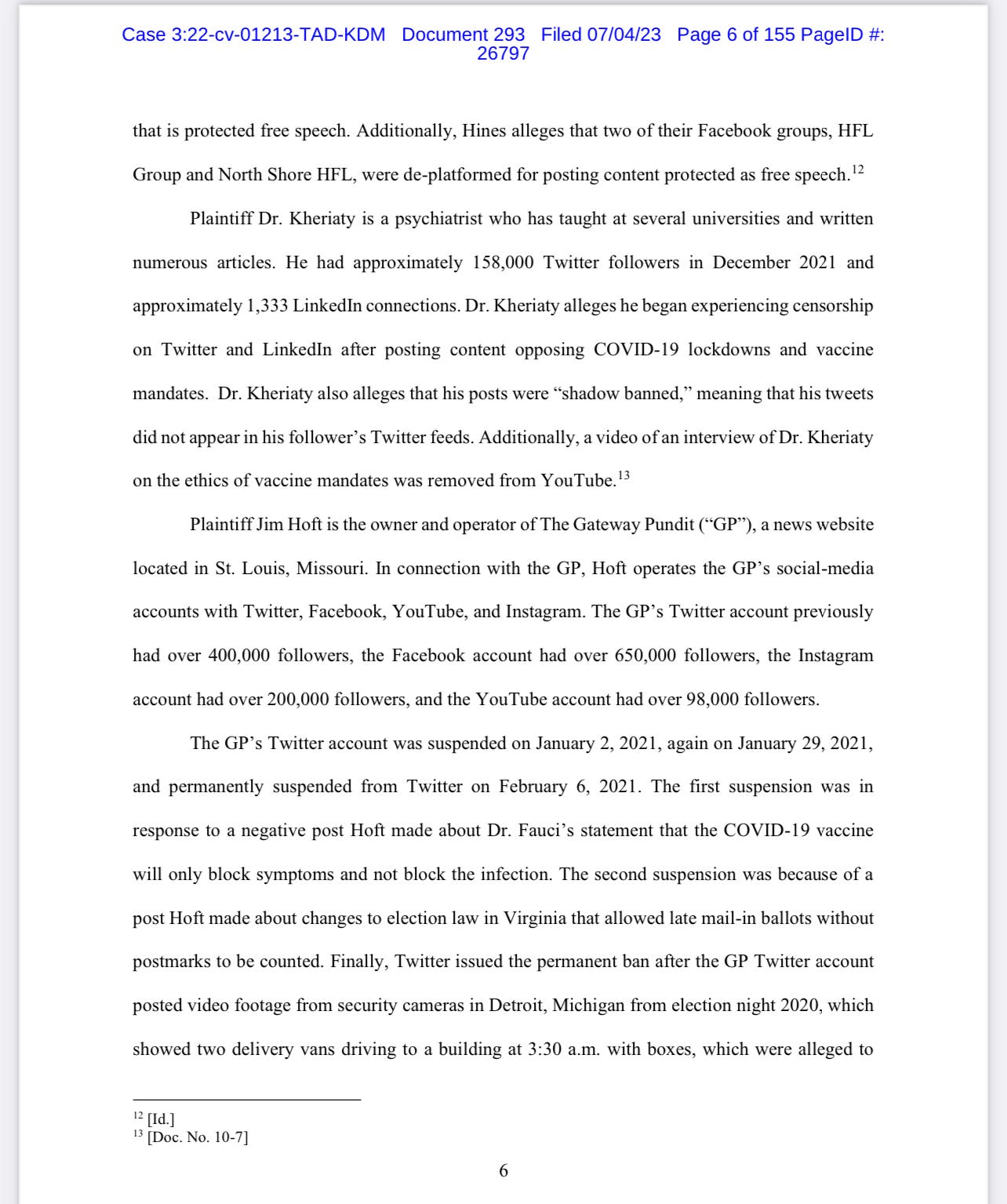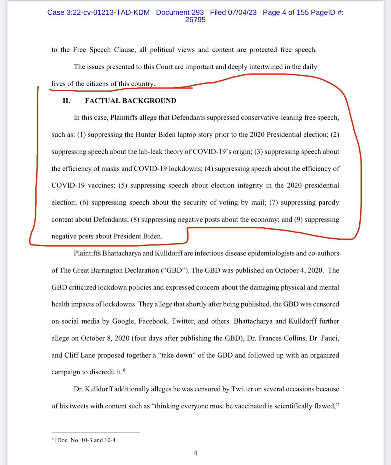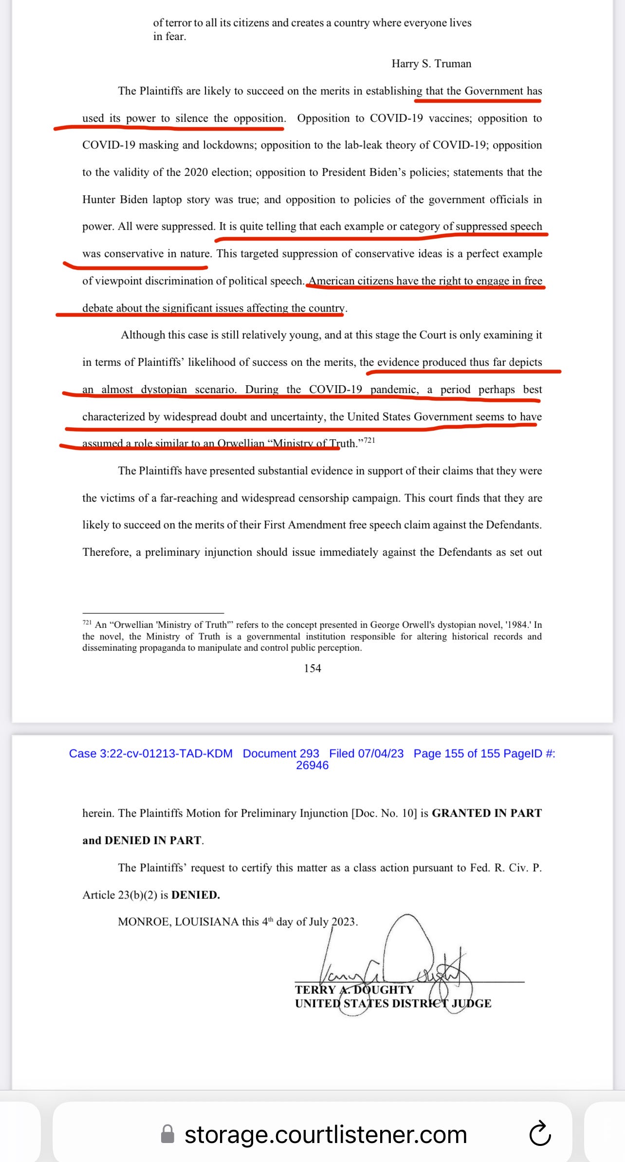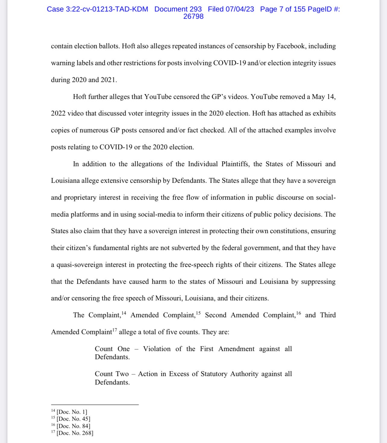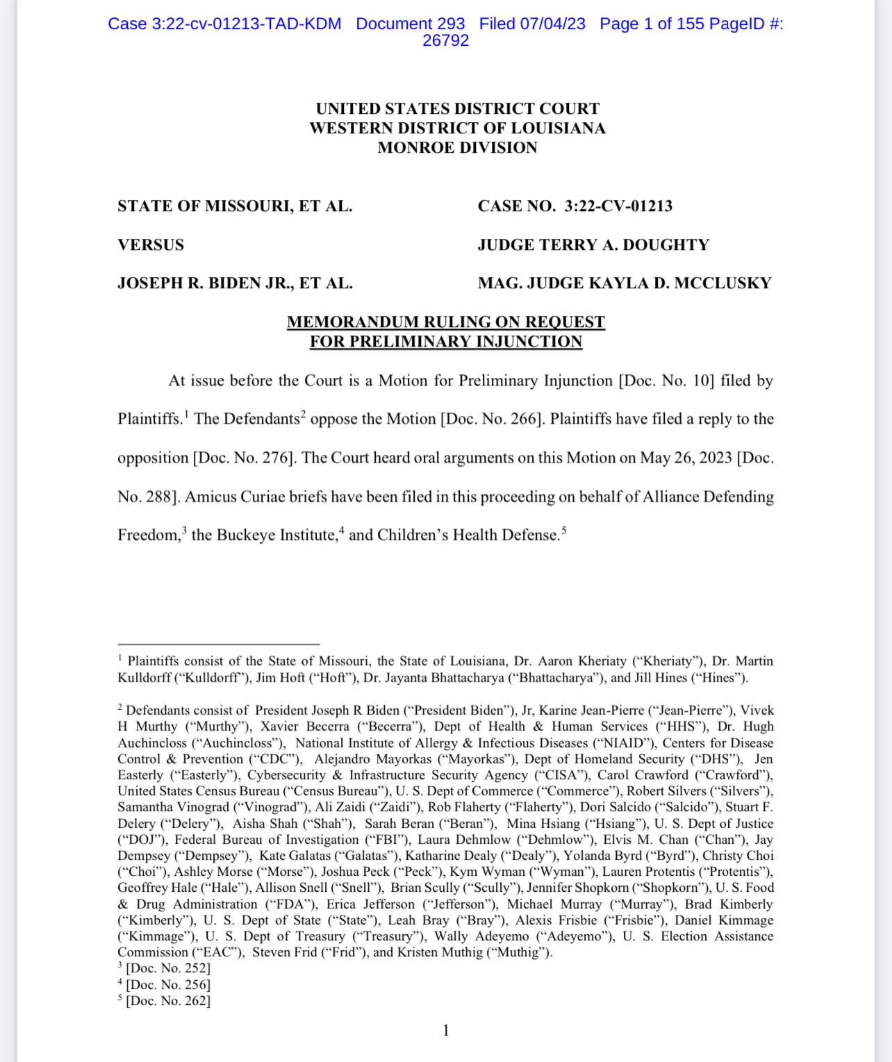 Here are some pages from Federal Judge Terry A. Doughty’s lengthy July 4 memorandum:
