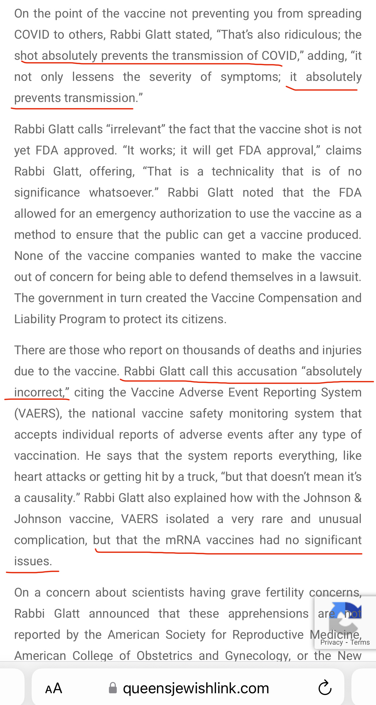 Yes - the truth was already available - from the very beginning of the rollout - to anyone who earnestly sought it. Didn’t Dr. Glatt, with the weight of the community - who hung onto his words, around his shoulders, have the responsibility to think critically, do a proper investigation, and be sure he was thoroughly informed on these life-and-death matters?