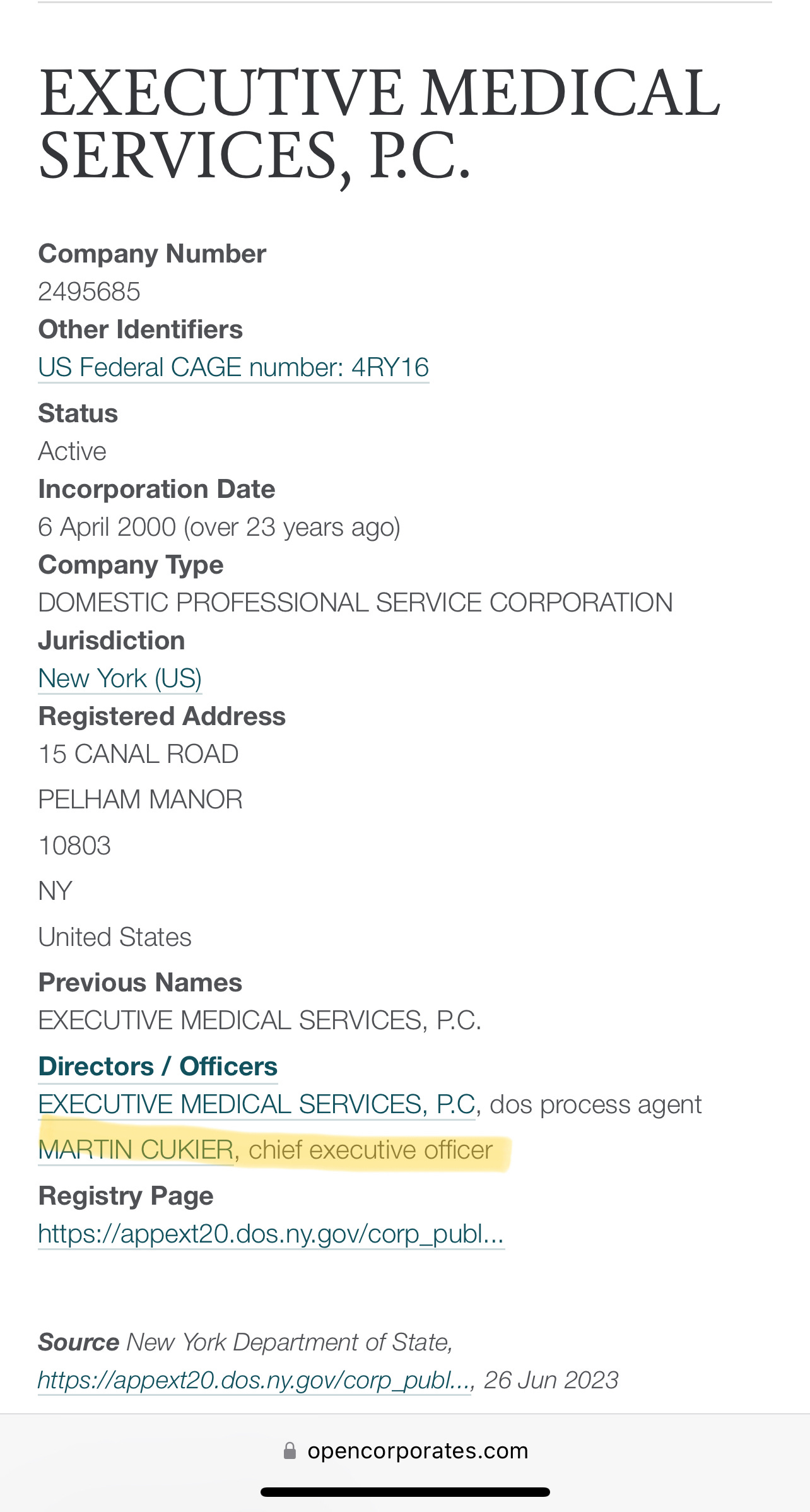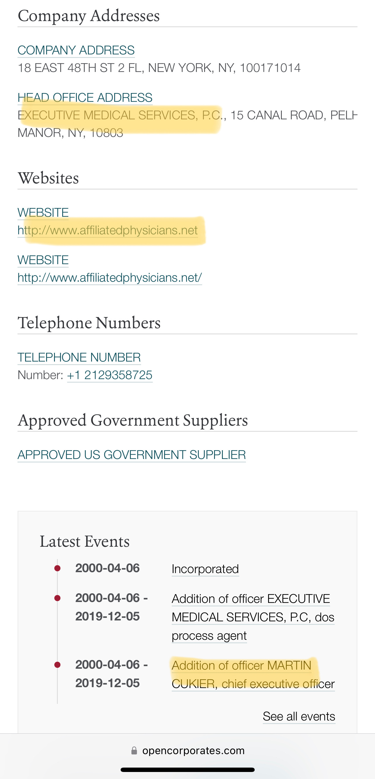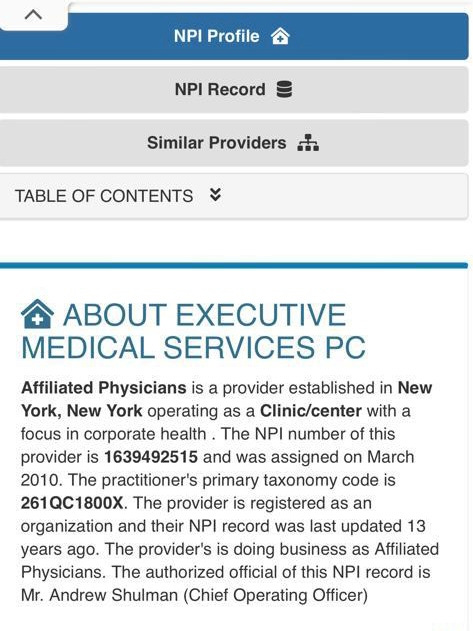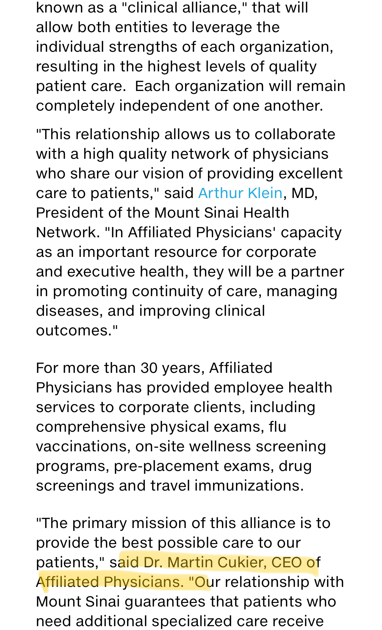 Here is the proof that Martin (Moshe) Cukier is the CEO of Executive Medical Services, otherwise known as Affiliated Physicians, (and which formed a partnership with Mt. Sinai Hospital in 2014):