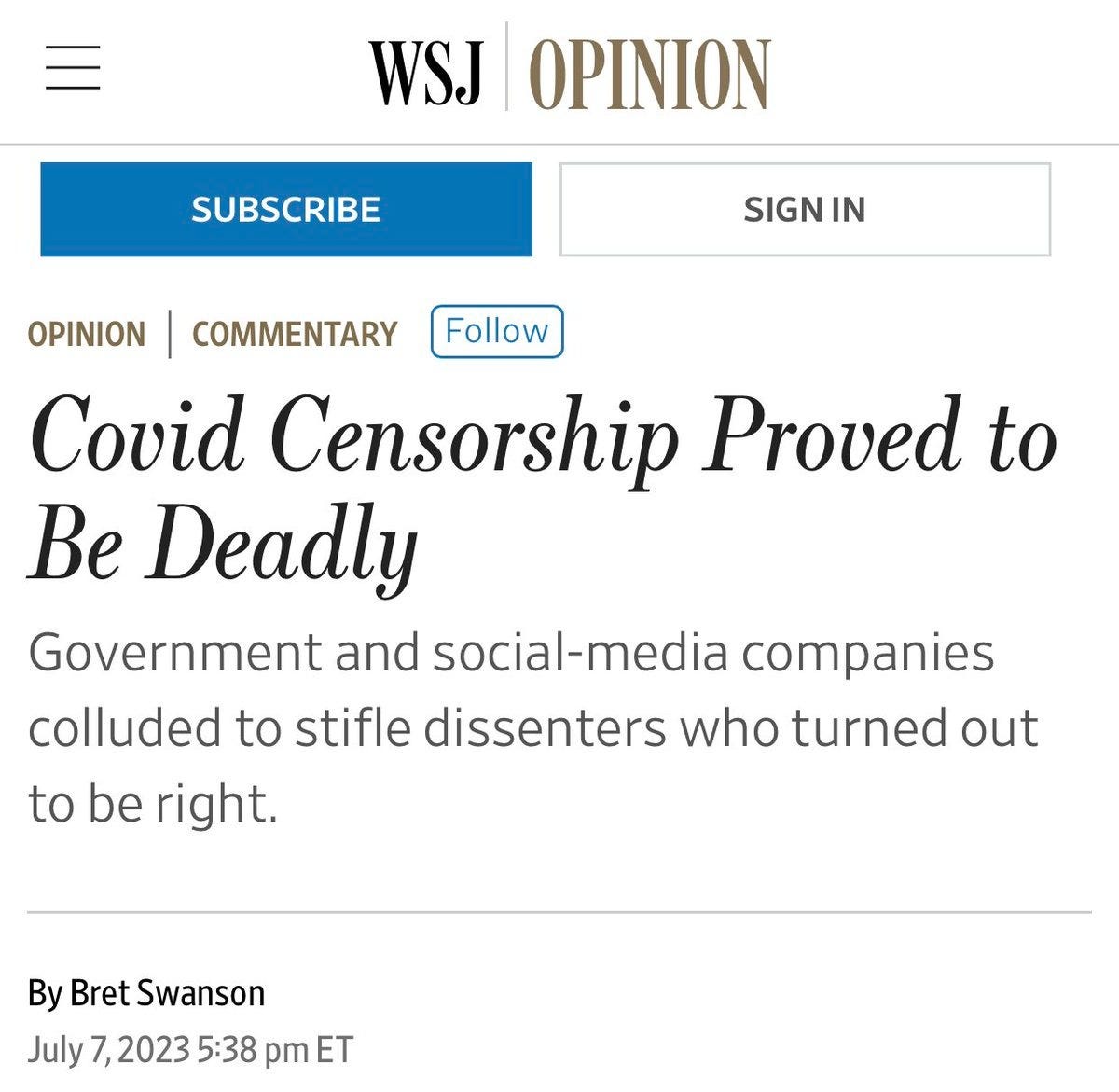 Right now, a landmark case is being fought in court. The Attorneys General of Missouri and Louisiana have sued the Biden administration for a grave infringement of the First Amendment right to freedom of speech - the underpinning of every freedom in the United States - by their having continually instructed social media companies to remove content that contradicted the desired government narrative.