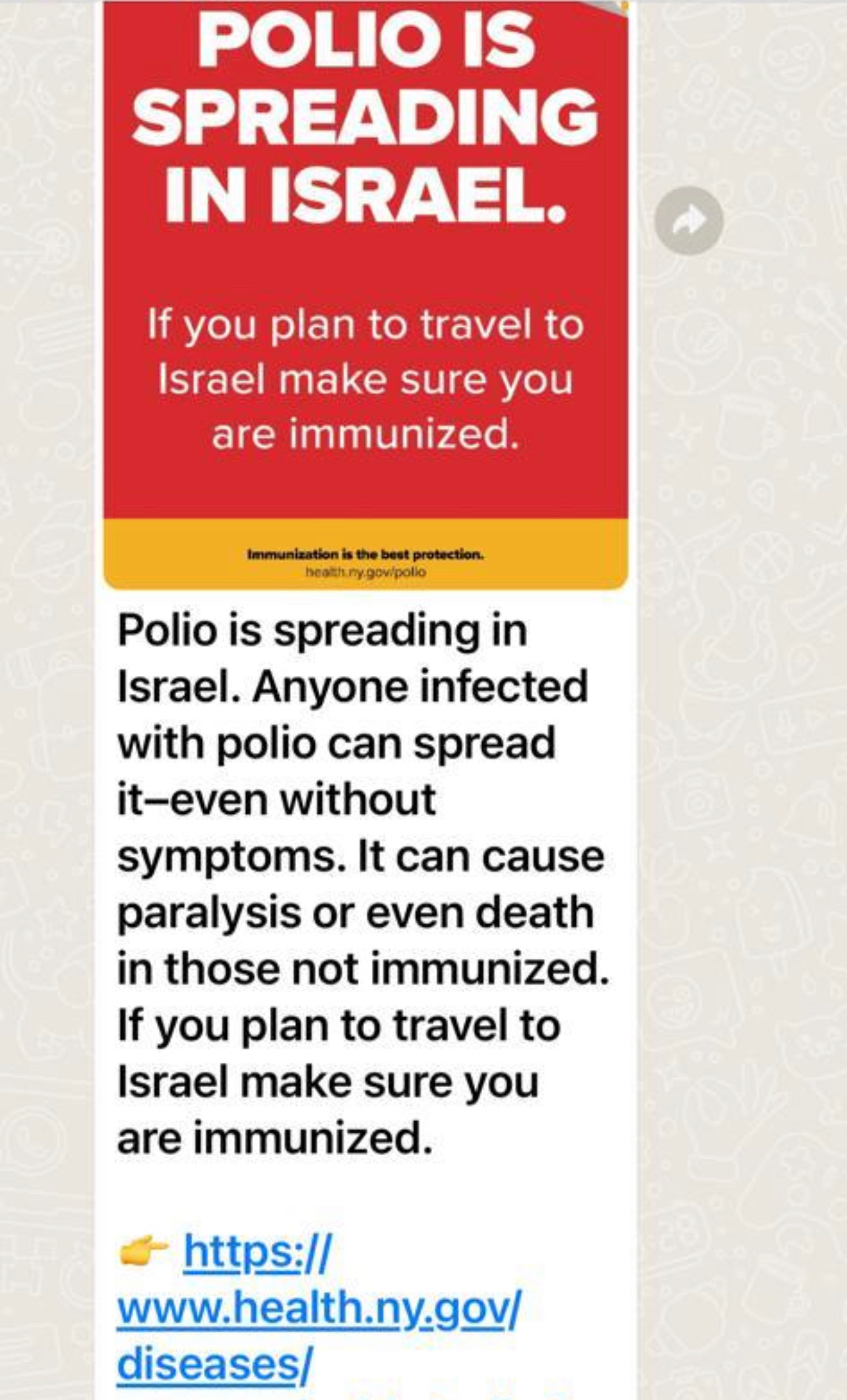 WHY? Because ONE child in a town in Northern Israel has paralysis? Things do NOT add up.