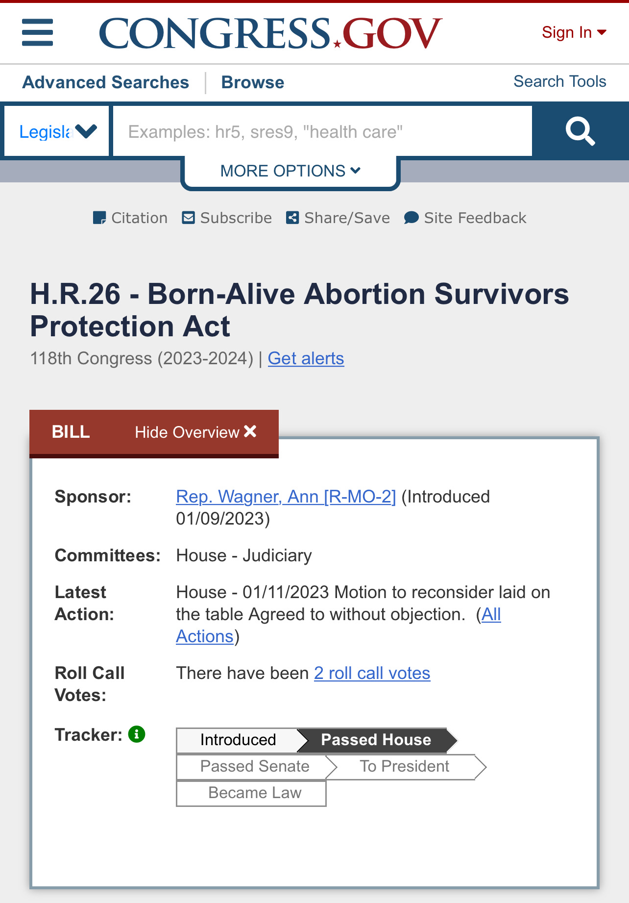 This is why we need to pass the federal Born Alive Act. HR 26, the “Born-Alive Abortion Survivors Protection Act.” passed Congress on January 11. Now, the Senate will consider whether to make it illegal to kill a child that has been born alive.