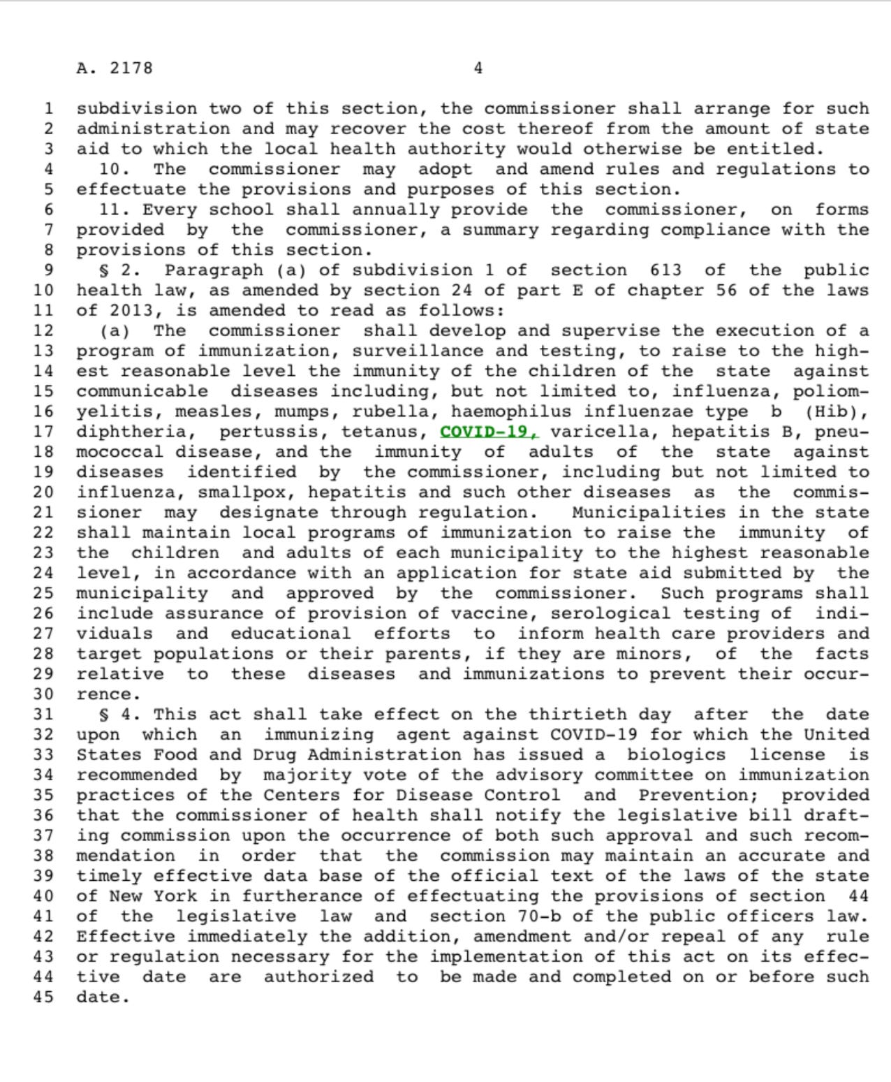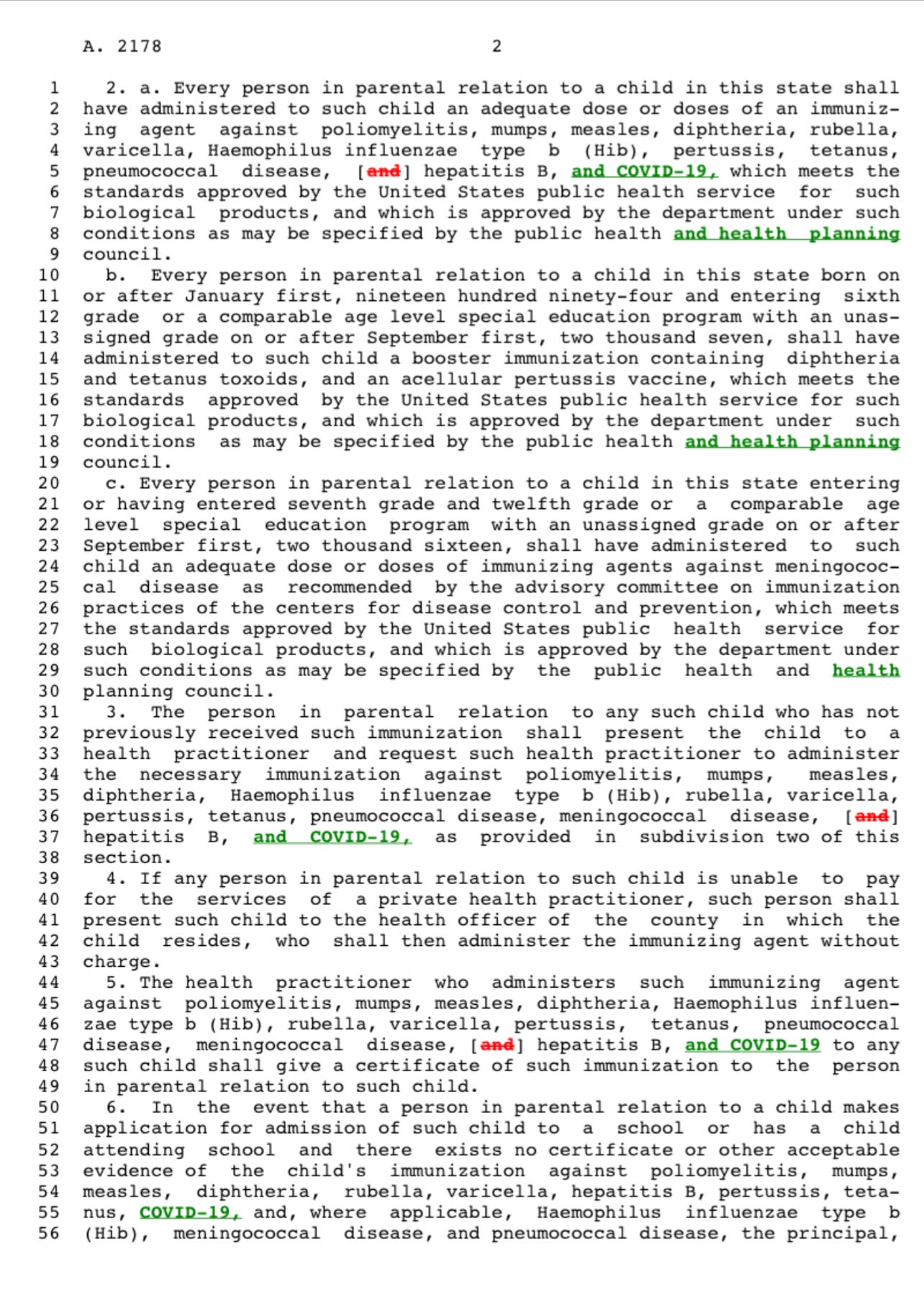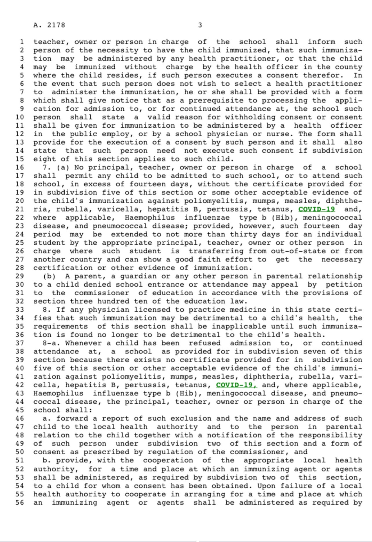 It would require covid-19 “vaccination” for children to attend school in New York State.