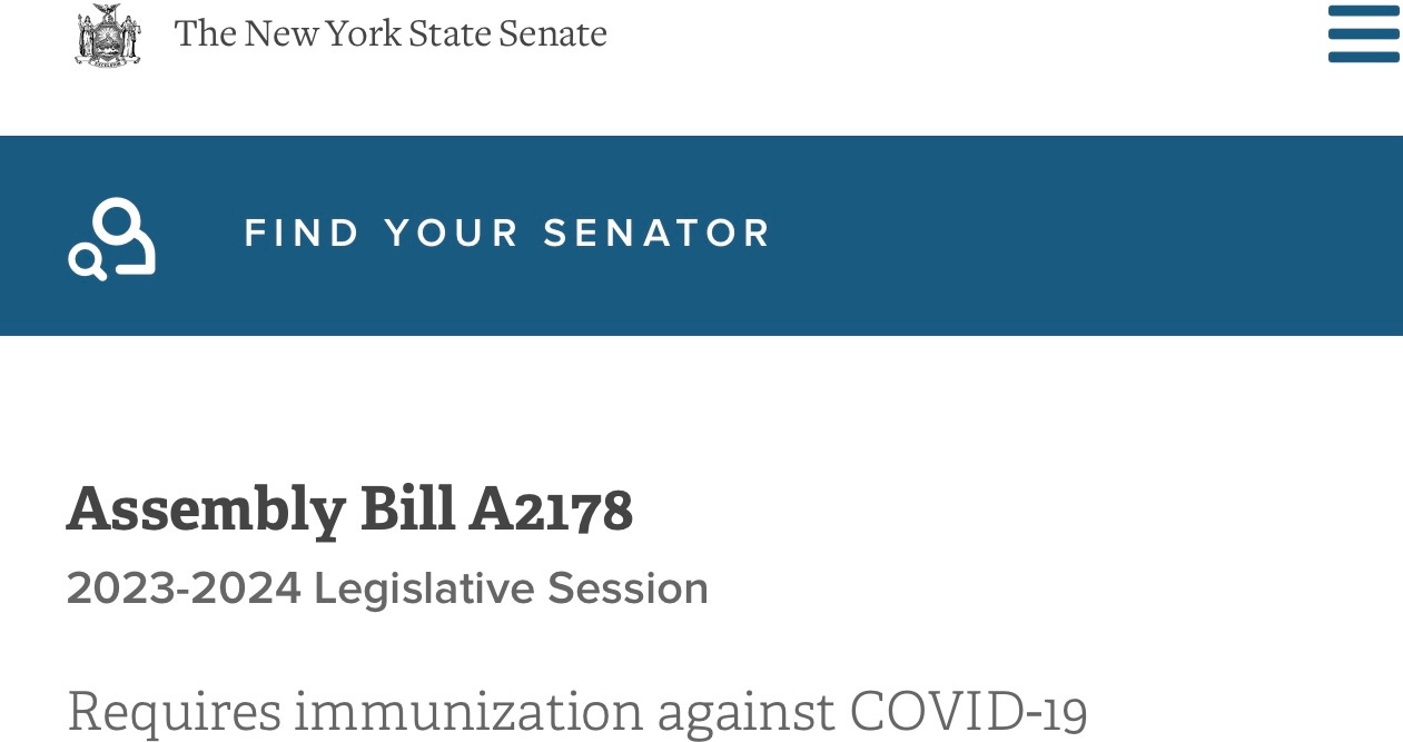 New Yorkers Rise Up! Bill introduced to REQUIRE covid vax for your children to attend SCHOOL!