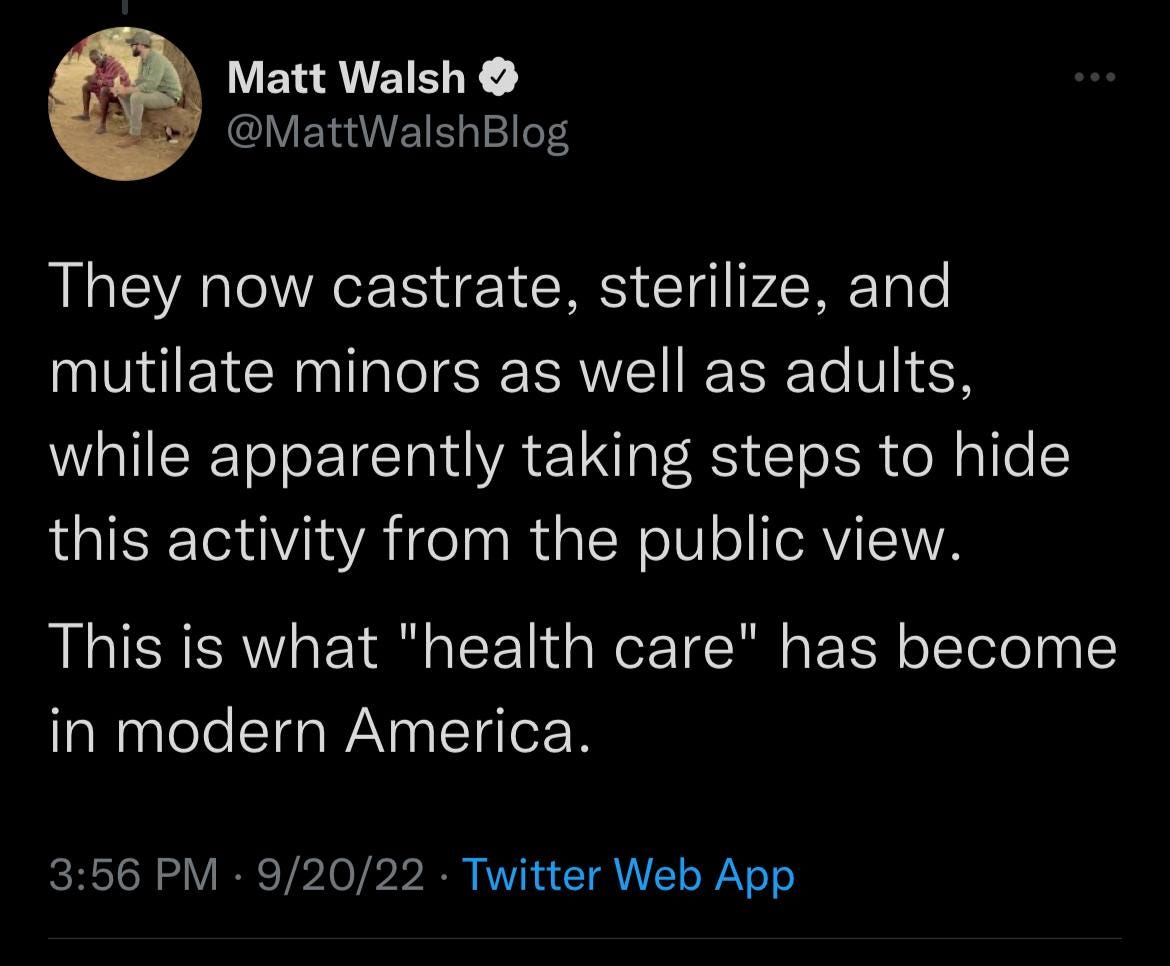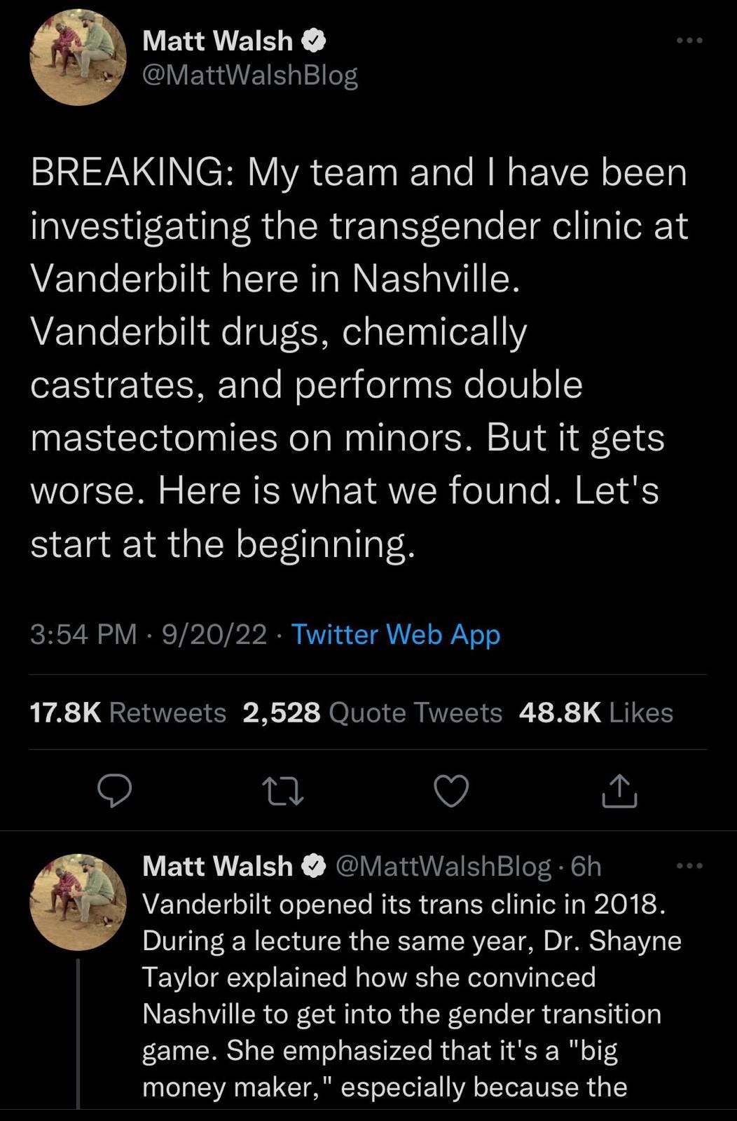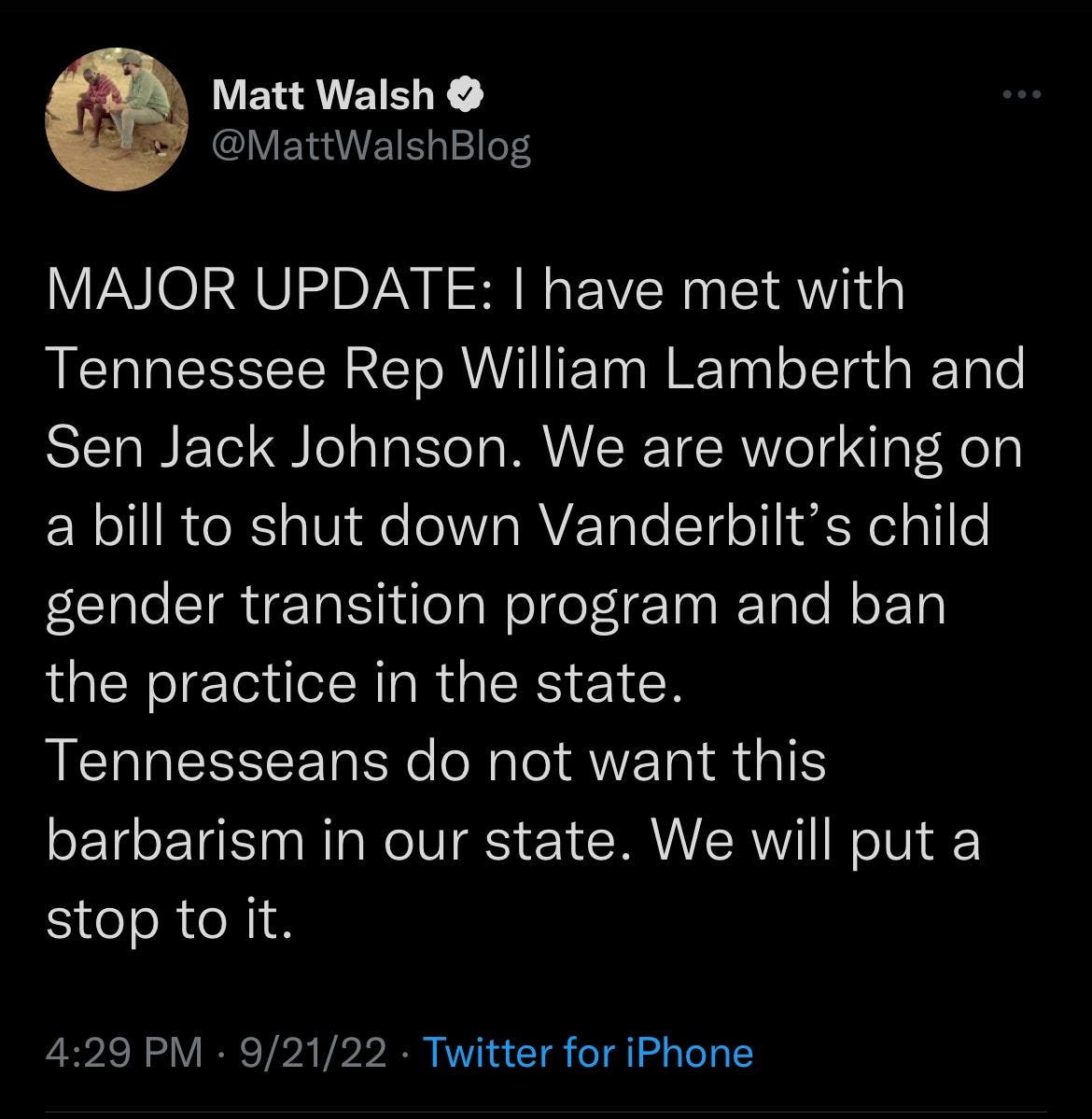 I found articles about the sane people who are fighting them. This is what more of us need to be doing, all over the world: https://tennesseelookout.com/2022/09/29/house-republicans-call-on-vanderbilt-hospital-to-stop-transgender-surgeries-on-minors/