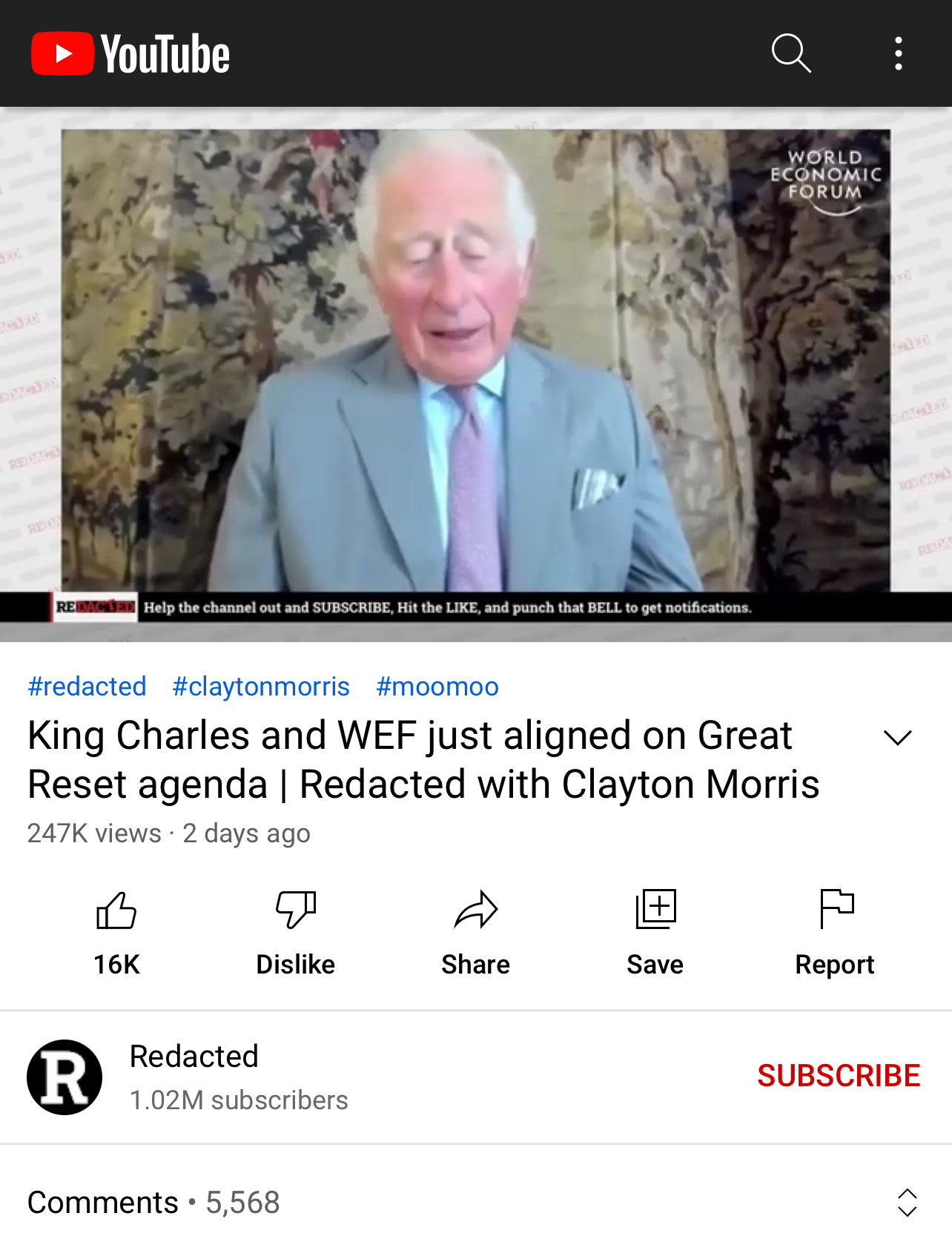 •His son Charles, (now king), has been closely aligned with Klaus Schwab of the WEF and their humanity-destroying goals for many years. In 2010 he said that population growth must be halted if the world is to live within "nature's benevolence and bounty.” https://www.scotsman.com/news/uk-news/stalling-population-growth-vital-earths-future-says-prince-1716675