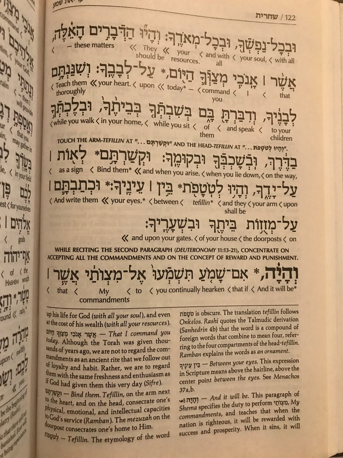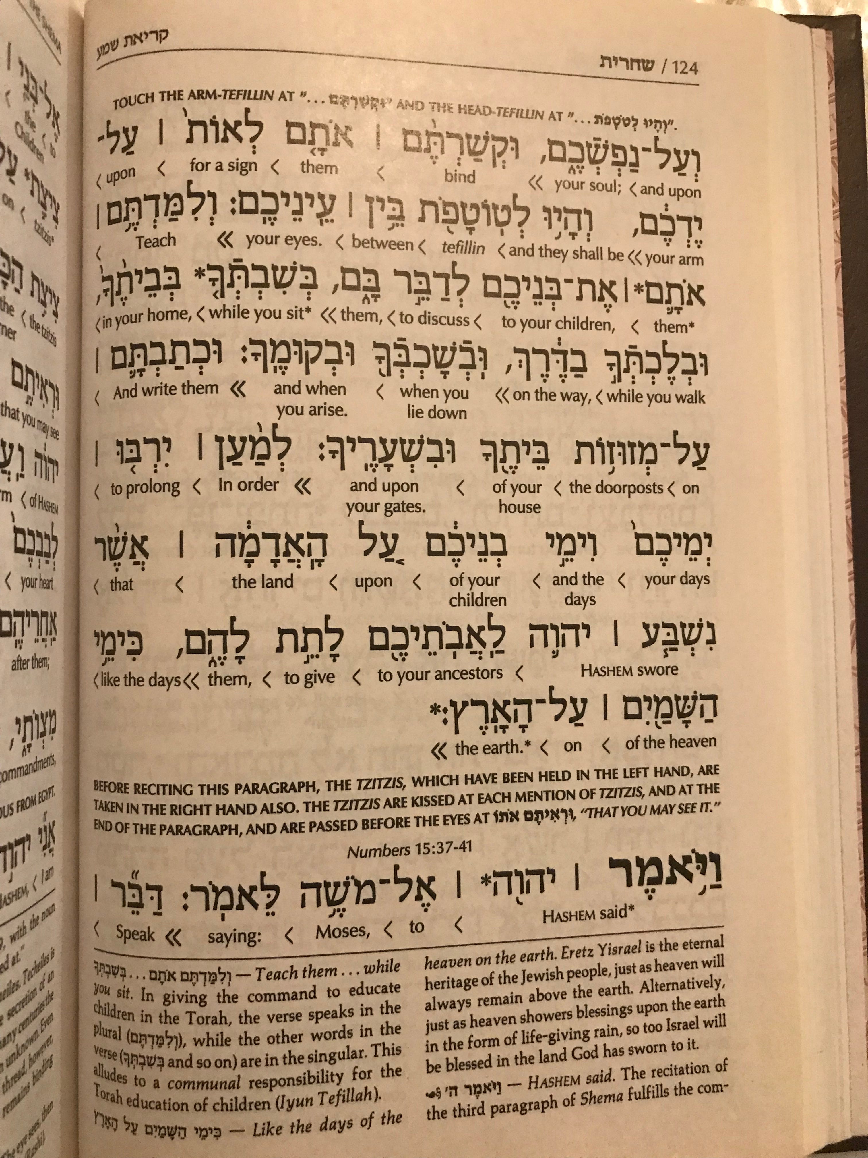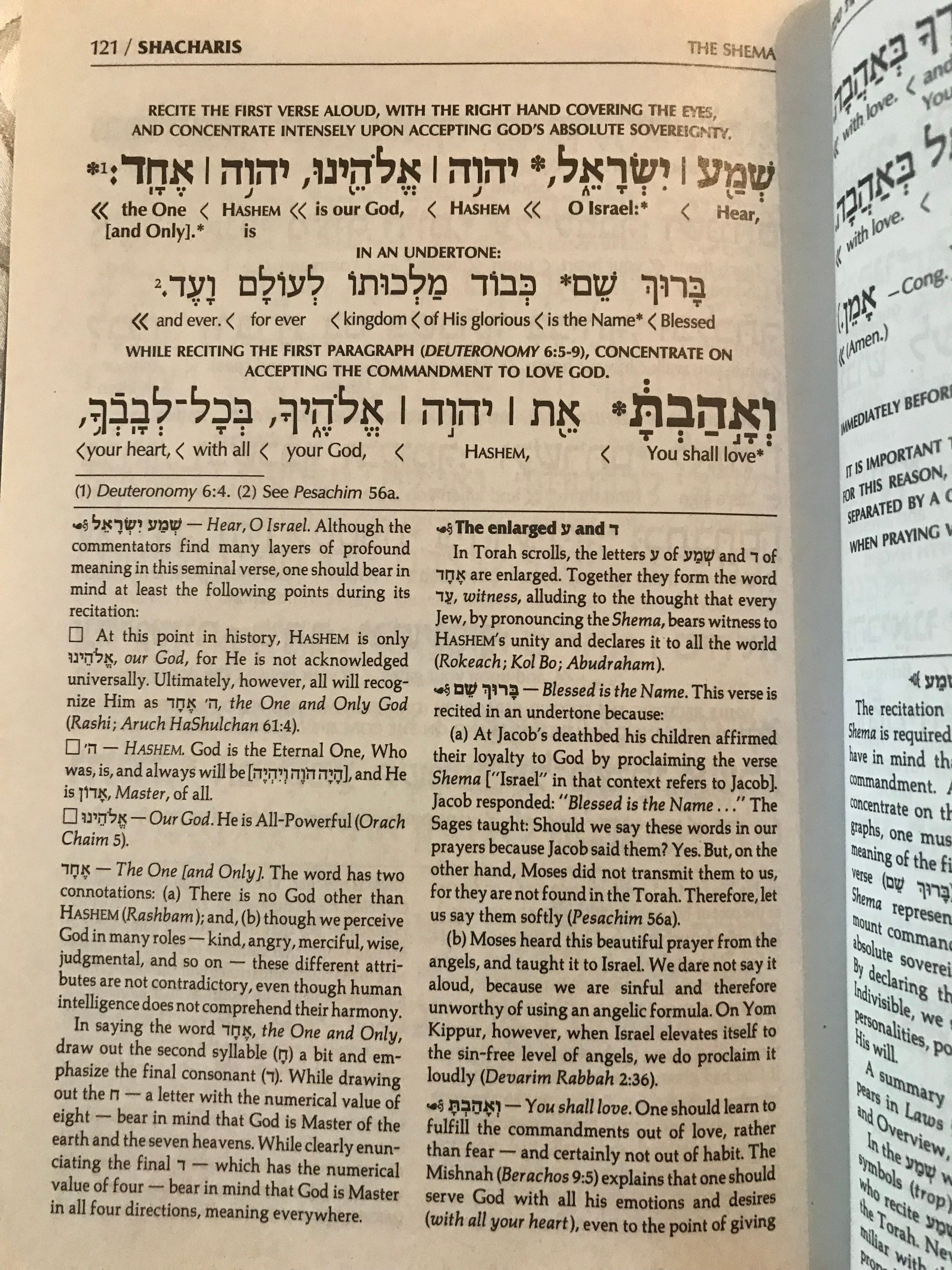 The actual Shema prayer begins on the second page that I’ve included here, page 121. These verses are from Deuteronomy 6:4: