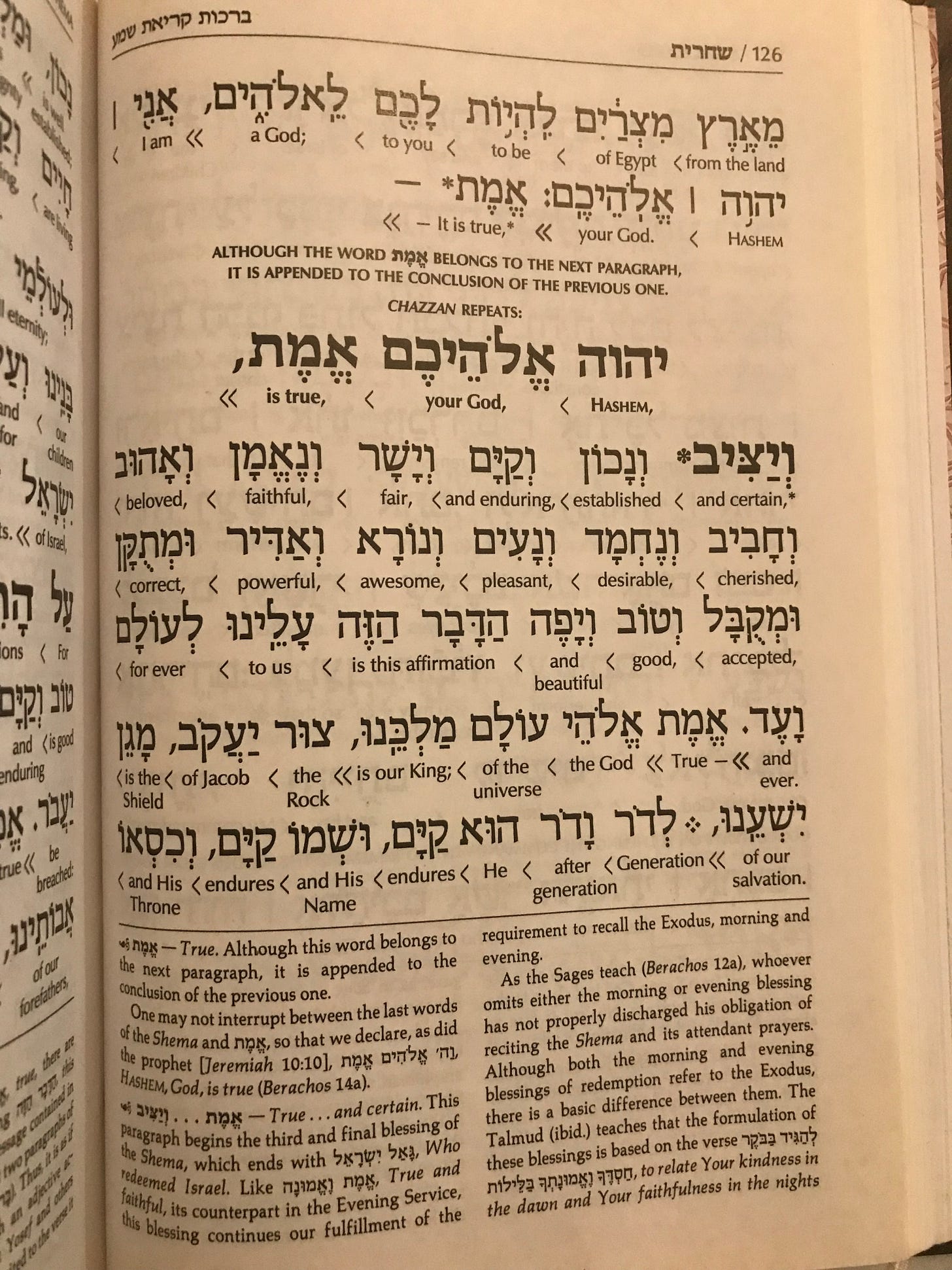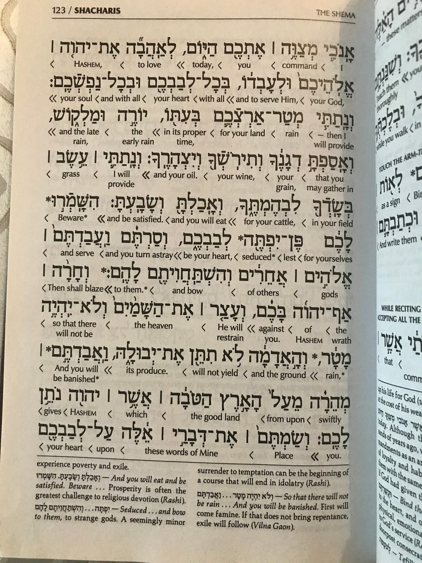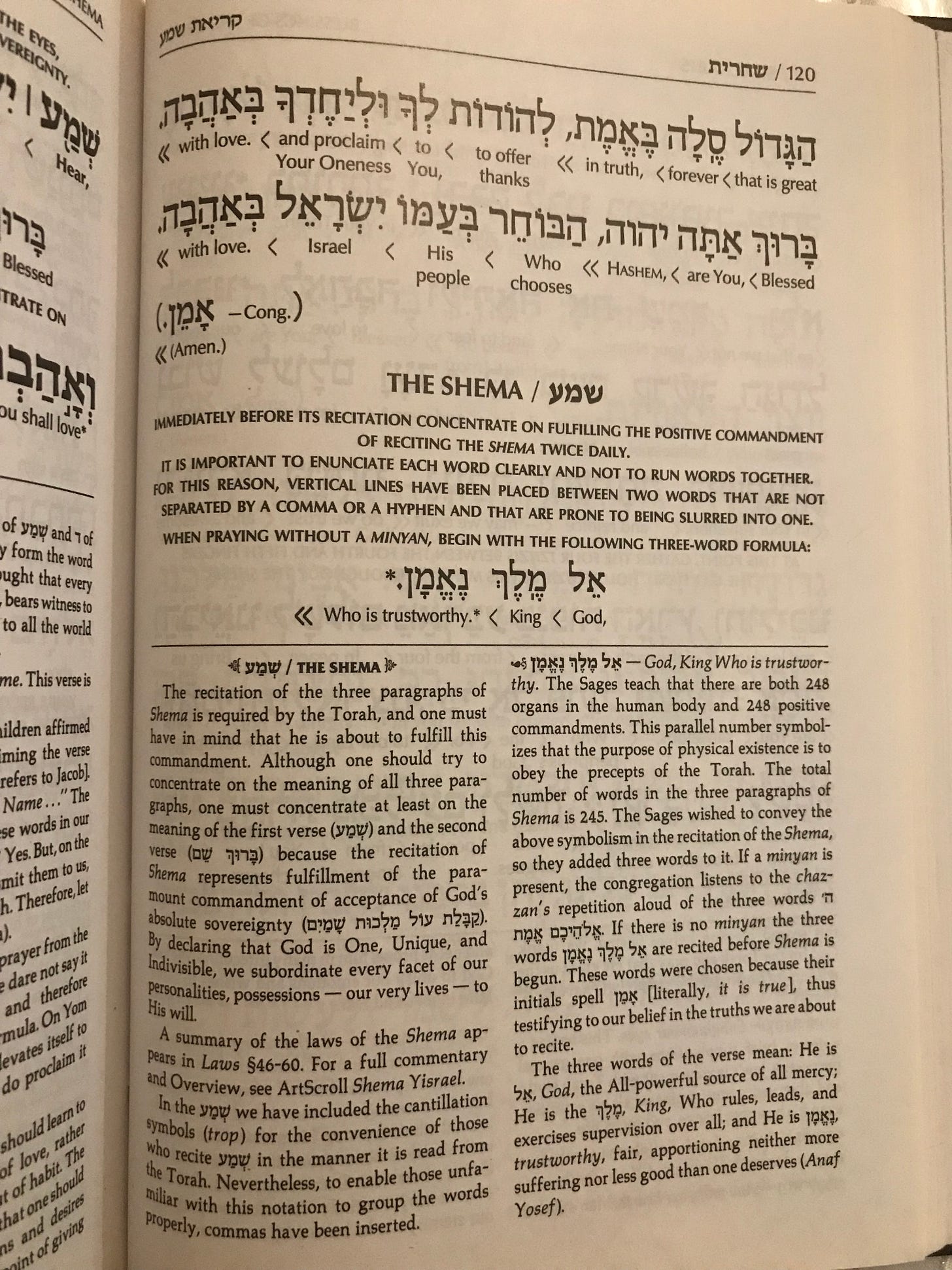 The actual Shema prayer begins on the second page that I’ve included here, page 121. These verses are from Deuteronomy 6:4: