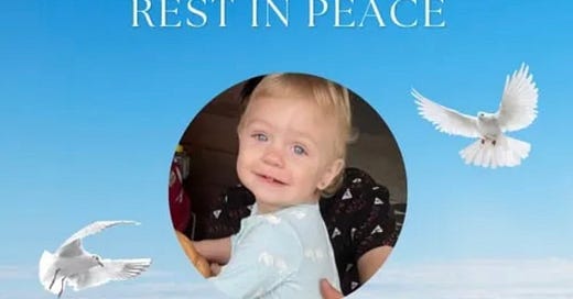 On October 19, 2023, we lost our precious Melody Rain Palombi-Malmgren, daughter of Katherine Palombi and Jesse Malmgren. Melody was a beautiful 15-month-old angel who brought immense joy and love into the lives of everyone who was blessed to know her. Melody will be greatly missed by all, including her big sister Pearl. Melody’s time with us was far too short, but her impact was immeasurable.