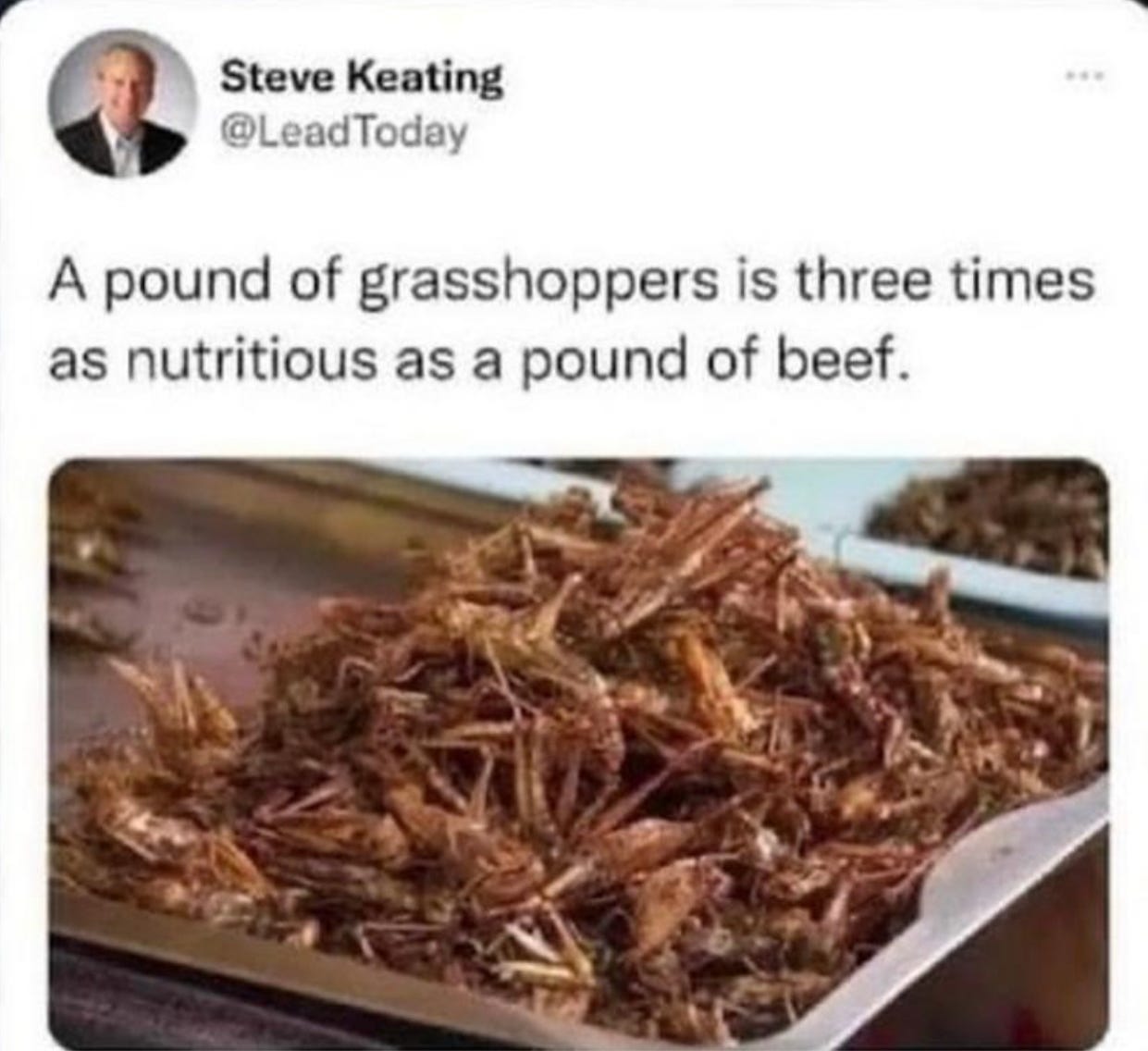 They claim that eating insects instead of beef is very helpful to the planet, which of course has been on the verge of crashing for the longest time. 😂
