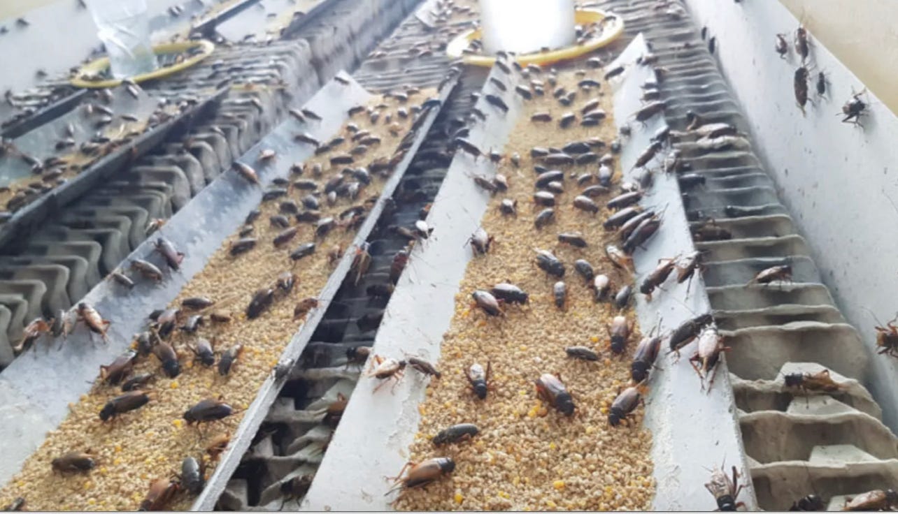 NOTE: that was published in May 2021. Entomo Farms (formerly Next Millennium Farms) in Canada was founded in 2014, and by Jan. 2021 it was already raising crickets crowded by the millions into a warm, humid enclosed space of 60,000 sq. ft. After 6-8 weeks they are harvested. No mention of checking insect health during that time. In short, they're using the same caution in producing 'healthy' cricket 'food' as they did in producing 'safe and effective' mRNA 'vaccines'.